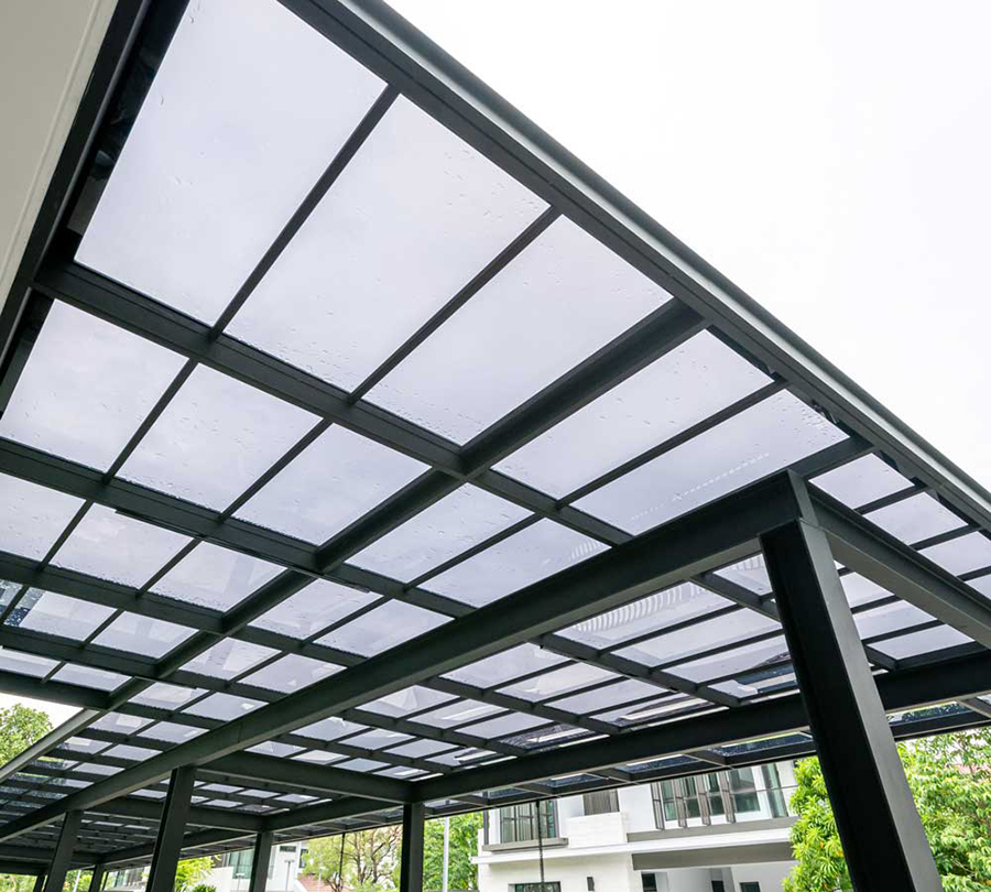 • Khá giống với tấm poly, kính cường lực khả năng đón ánh sáng là 98%. Giúp gia chủ tận dụng được ánh sáng tự nhiên.