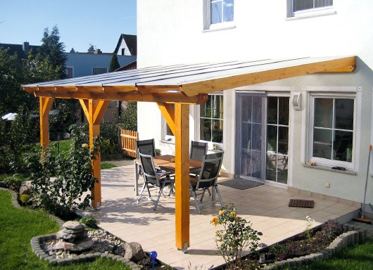 5. Thiết kế mái che sân trước nhà ống bằng gỗ