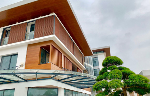 Gỗ nhựa tổng hợp hay có tên gọi khác là gỗ WPC (Wood Plastic Composite). Loại gỗ này thường được các KTS tin dùng nhiều hơn so với gỗ tự nhiên khi thiết kế ngoại thất ngoài trời. Về hình thức, gỗ WPC có màu sắc, vân gỗ tương tự như gỗ tự nhiên. Đặc biệt hơn, gỗ WPC có khả năng chống cháy, chống thấm và tính bền bỉ, không bị cong vênh theo thời gian.
